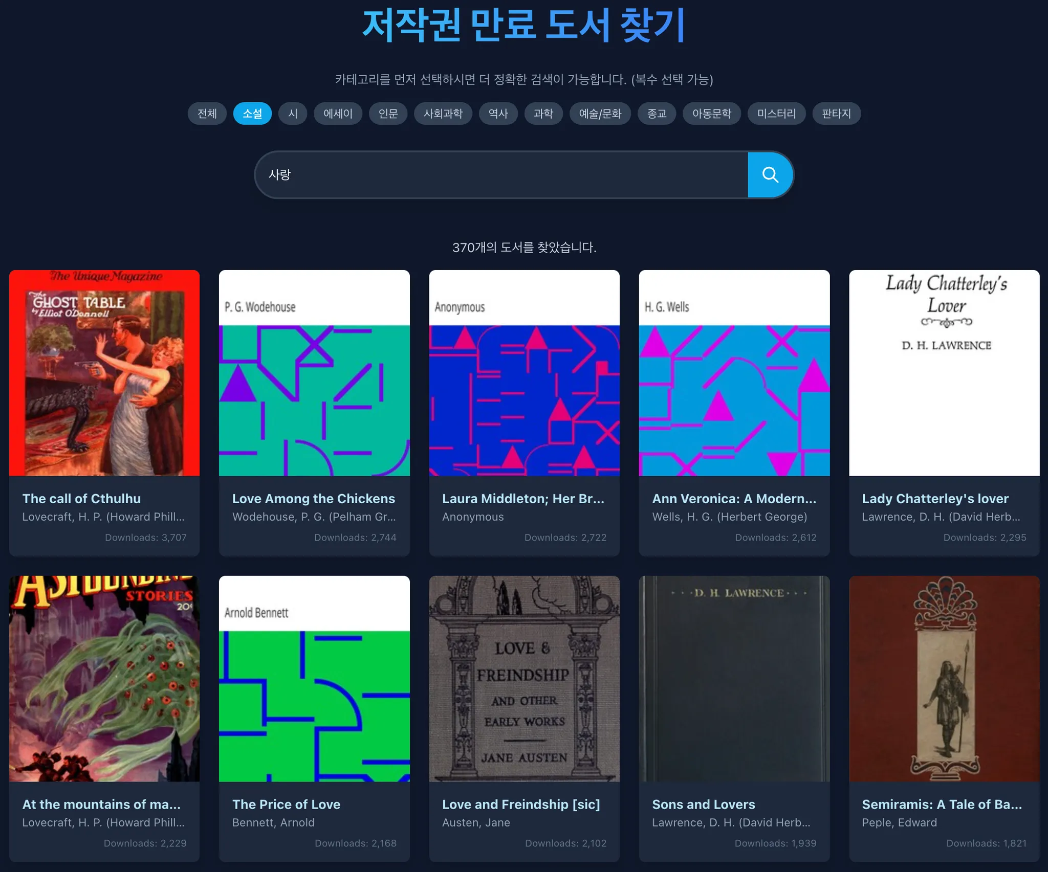 Project Gutenberg 의 방대한 저작권 만료 도서 검색